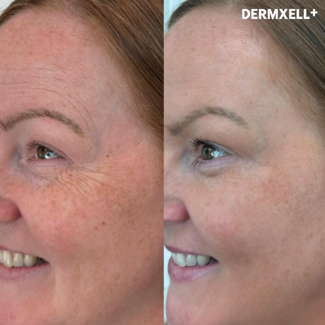 Smoothed Deep Expression Lines & Crow's Feet: 98% of women over 50 have permanent crow's feet and laugh lines etched from decades of facial expressions. DERMXELL⁺'s clinical-strength peptides work at the cellular level to soften these established wrinkles while preventing new ones from deepening.
